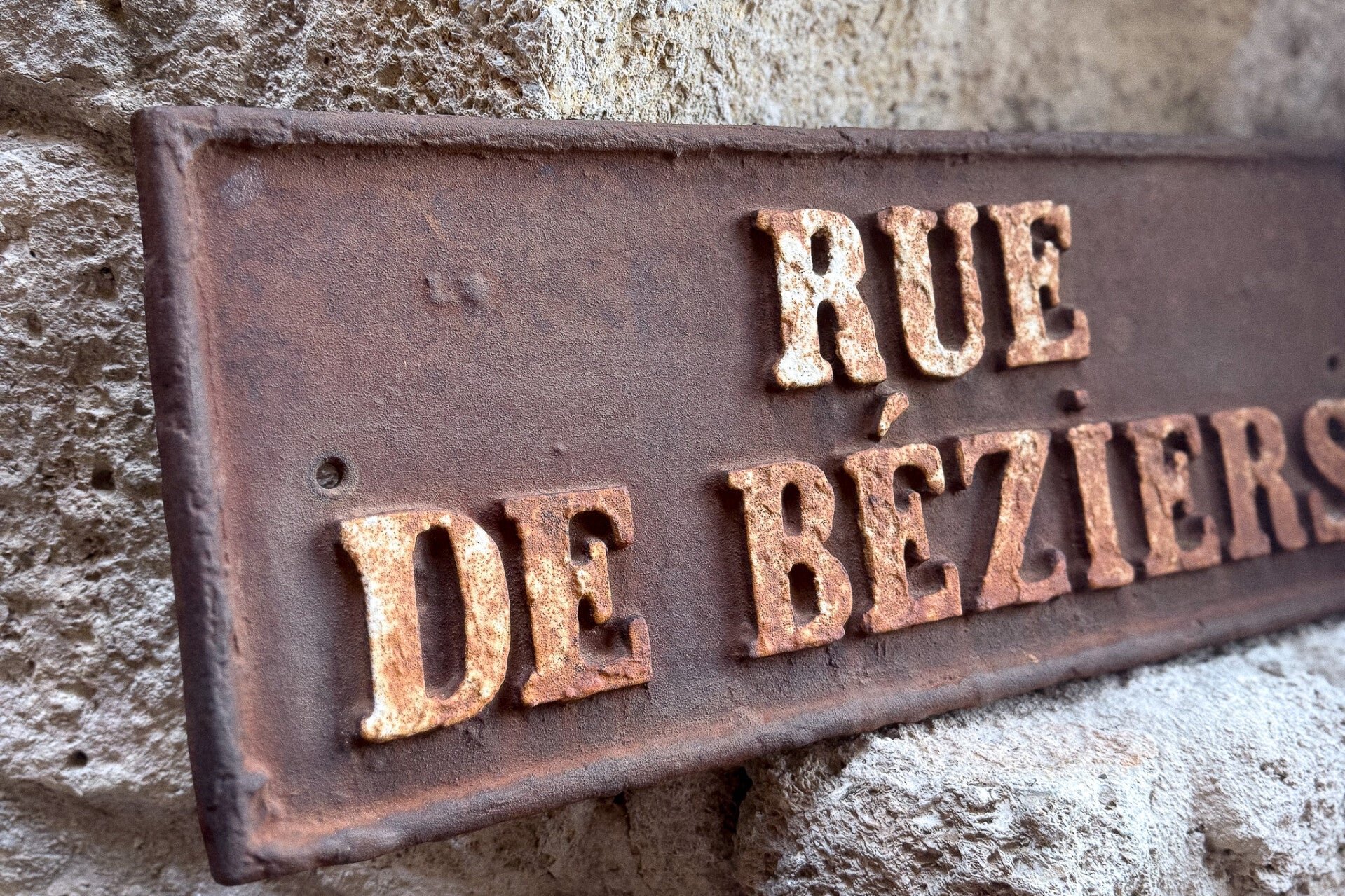 Ancienne plaque de rue en fonte – Béziers, XXᵉ siècle